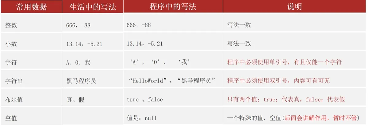 字面量其实就是告诉程序员数据在程序中的书写格式