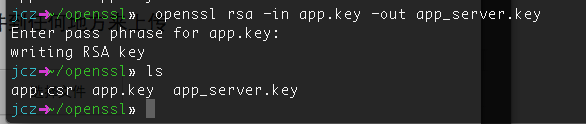 生成服务器的私钥 openssl rsa -in app.key -out app_server.key ,截图如下